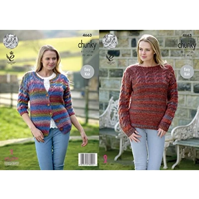King Cole Womens Chunky Knitting Pattern Ladies Easy Knit Cabled Sweater & Cardigan (4663)