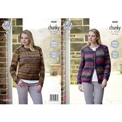 King Cole Womens Chunky Knitting Pattern Ladies Easy Knit Raglan Sleeve Cardigan & Sweater (4660)