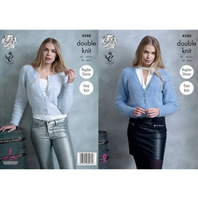 King Cole Womens Double Knitting Pattern Ladies Easy Knit Raglan Sleeve Cropped Cardigans (4588)