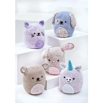 This is a paper CROCHET PATTERN instruction leaflet and not the finished items. Crochet with King Cole Yummy and Big Value Chunky To make the items featured in this leaflet you will need 6.0mm and 4.0mm crochet hooks. The following designs are featured in this leaflet: Squishy Amigurumi Toy Bear, Unicorn, Cat, Dog and Rabbit. Size Information: Measurements (Height x Width): Approx. 30 x 25.5 cms / 12 x 10 Inches Please see leaflet for exact yarn requirements. King Cole recommend that you use King Cole Yummy and Big Value Chunky other yarns maybe used but check tension requirements prior to starting your project. All instructions are in English., Manufacturer: King Cole
