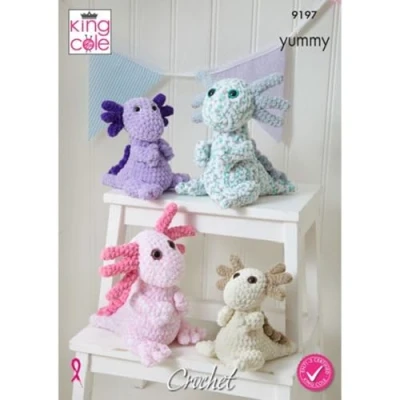 King Cole Yummy Chenille Crochet Pattern 9197 Axolotls Toys