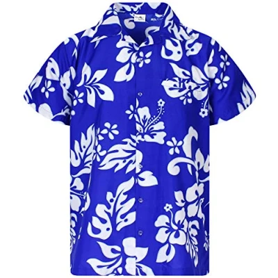 King Kameha Floral Vibes Hibiscus Print Hawaii Colorful Stylish Shirt Standard Fit, Hibiscus, Indigo Blue, L