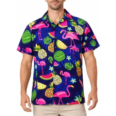 ✔ LIGHTWEIGHT & BREATHABLE: Lightweight, breathable fabric – ideal for hot summer days, holidays and tropical climates. ✔ FLAMINGO & MELON PRINT: Eye-catching tropical design with flamingos and melons in authentic Hawaiian Aloha style. ✔ COMFORTABLE REGULAR FIT: Relaxed and comfortable cut offering great freedom of movement for everyday wear and leisure. ✔ EASY CARE & QUICK DRY: Machine washable, wrinkle-resistant and quick-drying – perfect for travel and daily use. ✔ PERFECT FOR SUMMER & HOLIDAYS: Ideal for beach, vacations, parties, festivals and summer events – a must-have men’s Hawaiian shirt.