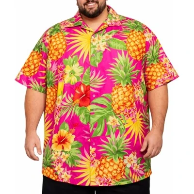 King Kameha Men's Pineapple Designs Summer Party Shirts Short Sleeve, Pineapple, Pink, 7XL