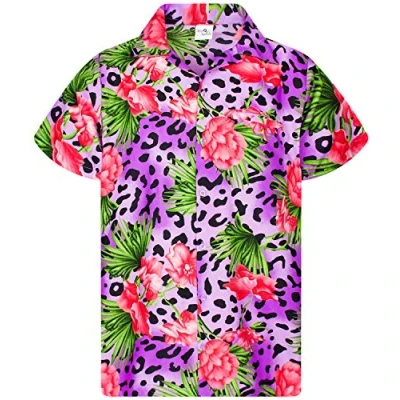 King Kameha Men's Regular Fit Hawaiian Shirts Casual Animal Print Shirt, Leopard Flowers, Purple, XL