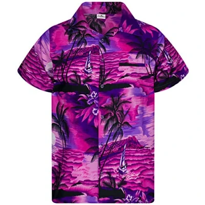 King Kameha Men's Surf Shirt Short Sleeve Casual Button Down Hawaii Vacation, Surf, Pink Purple, M