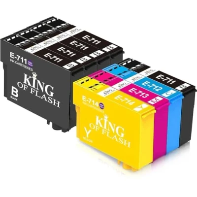 KING OF FLASH 1 Full Set + 4 Black Compatible Printer Ink Cartridges For Epson T0715+T0711 Stylus D78, D92, D120, DX4000, DX4050, DX4400, DX4450, DX5000, DX5050, DX6050, DX7000F