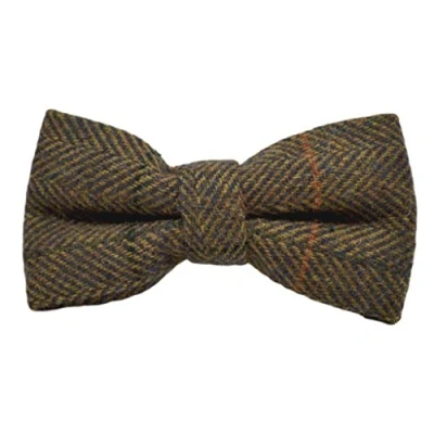 King & Priory Boys Dijon Brown Herringbone Check Pre Tied Bow Tie, Tweed