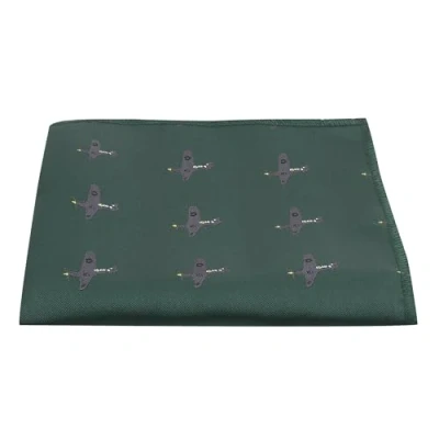 King & Priory Dark Green Embroidered Hurricane Fighter Plane Pocket Square, Handkerchief