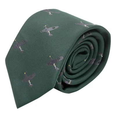 King & Priory Dark Green Embroidered Hurricane Fighter Plane Tie