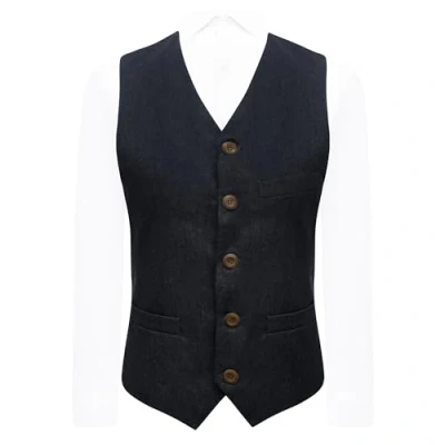 King & Priory Highland Weave Deep Blue Waistcoat XXL