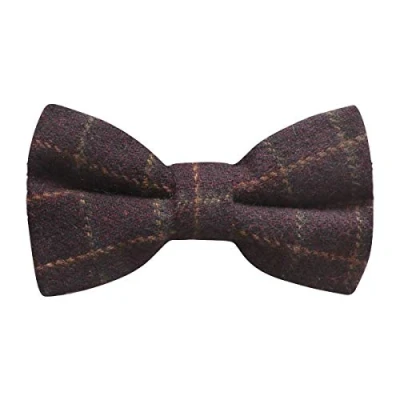 King & Priory Luxury Merlot Red Tattersall Check Tweed Pre Tied Bow Tie