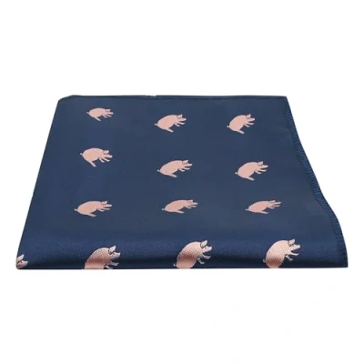 King & Priory Navy Blue Embroidered Pig Pocket Square, Handkerchief