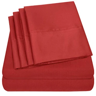 King Size Bed Sheets 6 Piece 1500 Supreme Collection Fine Brushed Microfiber Deep Pocket Sheet Set Bedding 2 Extra Pillow Cases, Great Value, King, Samba Red