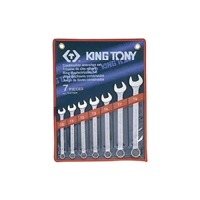 KING TONY 1207MR Combination Wrench Set with Nylon Pouch Bag, 10 mm 19 mm, 7 Piece