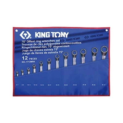 KING TONY 1712MR 75 Degrees Offset Ring Wrench Set with Nylon Pouch Bag, 6 mm 32 Size, 12 Piece