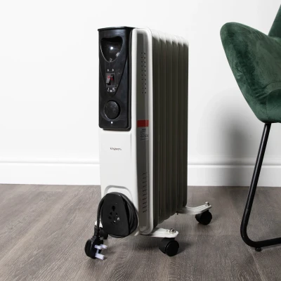 Cheaper-OnlineStay warm and comfortable with this oil filled radiator heater, designed to efficiently heat any room with ease. Featuring an adjustable thermostat, this heater allows you to set the perfect temperature for your space, while the easy to use controls ensure simple operation. The 7 fins maximise heat distribution, providing steady warmth to keep your room cosy even on the coldest days. For added convenience, this model comes with carry handles and castors, allowing this to be easy to move from room to room. With 230V-50Hz voltage with a plug and cord storage, this radiator is the perfect choice for any home or office if you're looking for a portable heating solution. Product Dimensions Height: 45cm Width: 40cm Depth: 30cm