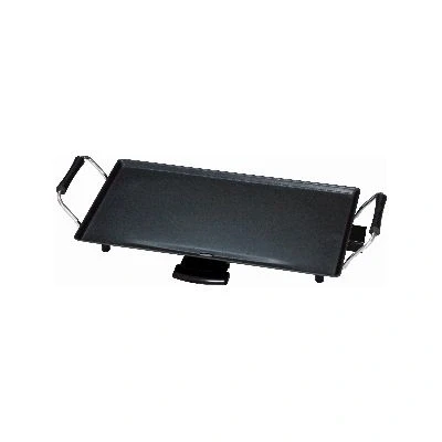SPECIFICATIONBring Japanese style cooking to your home with this teppanyaki grill. It is manufactured with an easy toclean non-stick coated surface, adjustable temperature control & removable oil drip tray. It has a largecooking area & is easily portable with its stainless steel insulated carry handles. Great for camping &caravanning holidays, it is ideal for cooking foods such as chicken, beef, prawns, fish & chopped vegetables.It also comes complete with 8 spatulas.Cooking Area: 46cm x 26cm Power: 220-240V~50HzCE ApprovedBARCODE 5017403 078197CARTON QTY 4 Pcs APPROX ITEM WEIGHT 2610gPACKAGING Colour Box
