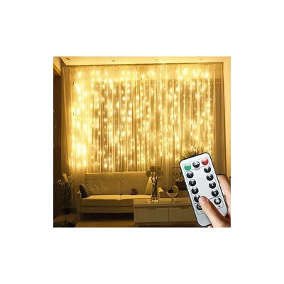 General description These stylish and eye-catching 300 LED warm white string curtain lights are the perfect decoration for windows, bed frames, covered gazebos, and various celebrations such as Christmas, weddings, and parties. They bring light and magic to any area all year round, making any occasion a memorable experience. Technical specifications Colour: Warm White Approx. size: 3 x 3 m Number of light strands: 10 LEDs per strand: 30 Power supply: USB Lighting modes: 8 Remote control: Yes, includes brightness adjustment and timing button (up to 6 hours on, 18 hours off) Wireless remote control battery: 1x CR2025 IP rating: IP44 Compliance: RoHS Compliant Usage These curtain lights are quick and easy to use, making them an impactful décor choice for various celebrations, including Christmas, birthdays, and weddings. The included remote control allows for convenient operation from a distance. Other information 8 lighting modes: combination, in waves, sequential, slo-go,