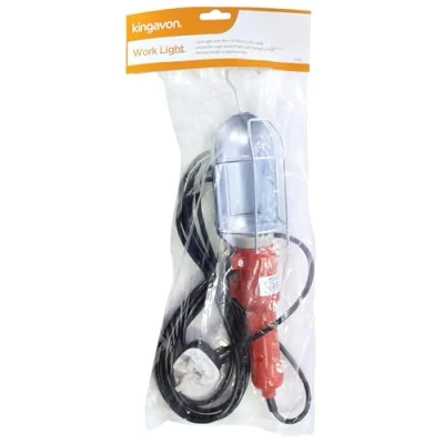 SPECIFICATIONThis mains operated work light comes with a protective cage around the light bulb, a 5m x 0.75mm² VDEcable & handy hanging hook for hands free use.CE ApprovedBARCODE 5017403 027461CARTON QTY 12/0 Pcs APPROX ITEM WEIGHT 526gPACKAGING Polybag with Header Card