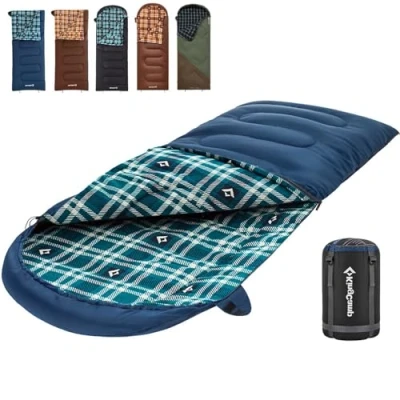KingCamp Cotton Flannel Sleeping Bag, 90x35 Bags for Adults Cold Weather, Big and Tall, Zip Together 2P Bag 4 Season, Lightweight, Water Resistant Camping Backpacking