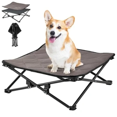 PERFECT FIT FOR SMALL DOGS:Sized at 22.4" x 22.4" x 9", this elevated dog bed is tailor-made for small breeds—providing a cozy, secure, and raised space that helps your pup feel calm and supported. ALL-SEASON COMFORT WITH 3-IN-1 DESIGN:The raised design provides better airflow, keeping your dog off the ground and reducing moisture and bugs. Includes a removable cushion for year-round use: cooling mesh for hot weather, soft padding for chilly days, or cushion-only mode for cozy indoor lounging. SET UP IN SECONDS:Folds up quickly with no tools needed, this small portable foldable dog bed features a quick-fold design. Comes with a durable Oxford storage bag—perfect for travel, camping trips, or small apartments. BUILT FOR STABILITY & SAFETY:Heavy-duty steel frame with cross-brace structure supports up to 100 lbs. Non-slip feet add extra stability—no shifting or sliding, even with playful pups. EASY TO CLEAN:The durable Teslin mesh surface is easy to wipe clean with a damp cloth. The removable cushion with suede-like fabric and Oxford cloth bottom is machine washable, ensuring hassle-free maintenance. SUPPORTIVE DESIGN FOR PET HEALTH:The Teslin mesh keeps your pet cool and dry. The sturdy frame provides reliable support, while the soft, removable cushion helps relieve joint pressure, making it perfect for maintaining your dog's health and comfort.