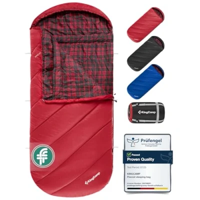 KingCamp XL Wide Sleeping Bag for Adult 3 4 Season Flannel Liner Large Plus Size Thermal Warm Lightweight Single Waterproof Camping Hiking Backpacking Outdoor with Compression Sack 220x100cm