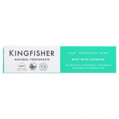 Kingfisher Toothpaste Mint is a natural, fluoride-rich formula (1450ppm) endorsed by the British Dental Health Foundation, offering cavity protection and a refreshing taste from peppermint, lemon, and fennel oils. Free from artificial ingredients and suitable for vegans and allergy-sensitive users, it’s a safe, effective choice for daily oral care.