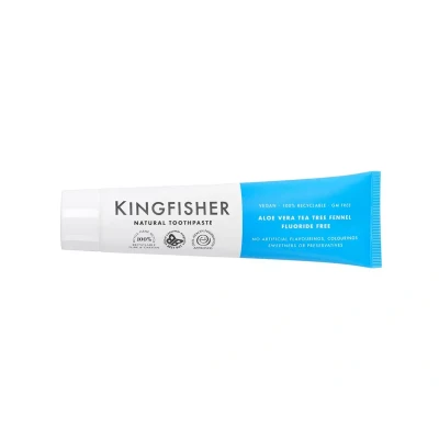KINGFISHER Toothpaste with Aloe Vera, Tea Tree, and Fennel is a fluoride-free, vegan-friendly formula that supports oral health naturally. Approved by the BDHF and recognized as an Ethical Consumer Best Buy, it offers a refreshing, chemical-free brushing experience.