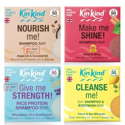 KinKind Shampoo Bars for hair UK made gift set. 4x Eco Friendly Soap Free Bars. Nourish Shine Strengthen and Cleanse with Natural Ingredients