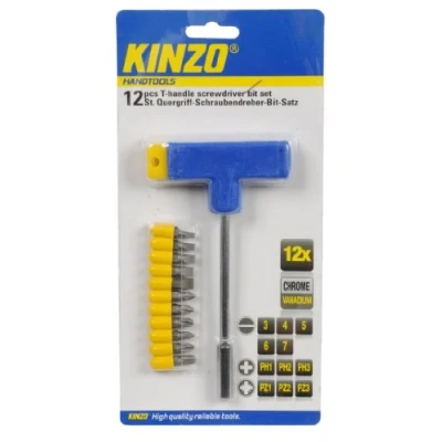 Kinzo 72030 T Handle Screwdriver and Screw Bits 12 Piece Set