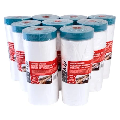 kip 9 Rolls of Tape 233 25 Fabric Masker, Masking Film with Tape, Adhesive Strips for Painting & Varnishing, Specially Rough Surfaces, 2600 mm x 17 m