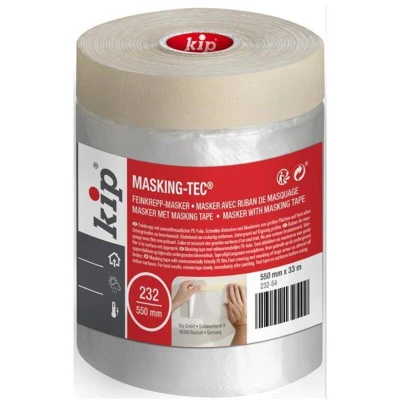 General description This KIP® 232 Plastic Masker Tape is made from environmentally friendly PE film and is designed for quick and full covering and masking of large surface areas. It adheres through static charge, providing a secure and easy application, making it ideal for masking walls, windows, doors, and furniture during painting projects. Suitable for use with emulsion paints and spray painting, it can be applied up to four days before painting, and for best results, it should be removed immediately after painting. Technical specifications Material: PE film Width: 0.55 meters Length: 33 meters Environmentally friendly Compatibility and accessories Suitable for masking walls, windows, doors, and furniture Compatible with emulsion paints and spray paints Installation Apply the tape to clean, dry surfaces Press firmly to ensure adhesion Can be applied up to four days before painting Usage Use for masking large surface areas during painting Remove immediately after painting for best