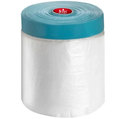 General description This Kip Plastic Masker with Blue Cloth Tape is a premium quality drop cloth measuring 2600mm x 17 metres. It features a standard cloth tape with an environmentally friendly PE backing film that adheres to surfaces using a static charge. This masker is UV-resistant and is designed for quickly and effectively covering and masking large surface areas, such as windows, making it suitable for various applications both indoors and outdoors. Technical specifications Dimensions: 2600mm x 17m Temperature resistance: up to 30 °C Indoor and outdoor service duration: approximately 10 days