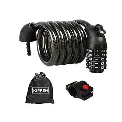 5-digit resettable combination with a choice of 100,000 different combinations, the additional number increases the time it takes to "decrypt the code" 10 times, much safer than other 4-digit blocks. With a length of 150 cm of cable you can lock 3 or 4 bikes together. Meanwhile, the automatic spiral design makes it easy to carry. With a diameter of 12 mm, it is sturdy, durable and not easy to cut, which can ensure the safety of the bicycle without the worry of being robbed. Supplied with a stand that can be installed on the frame under the saddle, so very easy to carry; Ideal for bicycles, but versatile and can also be used for gates and fences, grills and lawn mowers, skateboards, strollers, scooters, etc., Weight: 1.10231131 Pounds, Manufacturer: KIPPEN