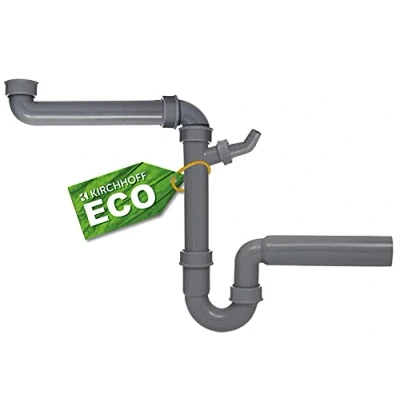 Sustainability: our Eco-Save sink siphon is made from recycled plastics. We avoid bringing new plastics into circulation and thus take our responsibility for sustainable production. Odour trap: the pipe siphon connects the sink to the waste water system. The water remaining in the arch prevents unpleasant odours. Space-saving: the siphon kitchen has a standard connection size of 11/2 inch and can be easily installed on many standard sinks. The immersion pipe is directed horizontally and thus offers more space under the sink. Multifunctional: the ¾ inch machine connection allows you to easily connect your dishwasher or washing machine. The device connection can be closed when not in use with a blind cap. Easy to use: with regular water flow, the siphon cleans independently. With stubborn blockage, the odour trap can be easily unscrewed and cleaned., Weight: 0.81350574678 Pounds, Manufacturer: W. Kirchhoff GmbH