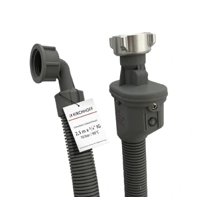 Universal use: the standardised 3/4 inch connections ensure that our connection hose fits all standard washing machines and dishwashers. Practical connections: thanks to the angled hose it can be easily and space-saving mounted on the machine. Quality function: if the hose bursts, the Aquastop function ensures that the water does not flow unhindered. Various lengths: up to 300 cm available. Find the right hose length for connecting your washing machine or dishwasher. Features: use the hose with max. 10 bar operating pressure and at a water temperature of max. 90°C., Manufacturer: Kirchhoff
