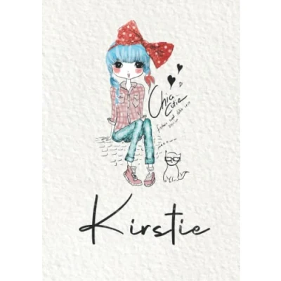Kirstie: Notebook A5 Personalized name Kirstie Birthday gift for women, girl, mom, sister, daughter Cover: Fashion girl with cat 120 lined pages journal, small size (ca. 6 x 9 inches)