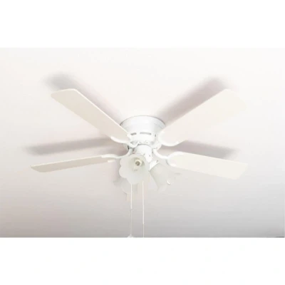 General description The Kisa Deluxe WH Ceiling Fan combines functionality and style with its elegant white and maple reversible blades. Designed for optimal airflow and comfort, this fan is perfect for any room in your home. Technical specifications Voltage: 220-240 Volt Frequency: 50 Hertz Diameter: 105 cm / 42" Housing colour: white Blade colour: white / maple (reversible) Blade pitch: 12° Lighting: uses 3 x E14 base, max. 3 x 60 W (bulbs not included) Max. motor wattage: 44 W Max. revolutions per minute: 202 Max. airflow: 5220 m³/h / 3072 cfm Max. noise level: 52 dB(A) Ceiling to blades: 15.0 cm / 5.9" Overall drop: 31.0 cm / 12.2" Diameter motor housing: 21.5 cm / 8.5" Weight: 5.7 kg / 12.6 lbs Compatibility and accessories Not compatible with remote control Optional wall control sold separately Compatible with bulbs of energy classes: E - A++ Optional accessories available in our shop Installation Not suitable for sloping ceilings Includes pull cords for 3 fan speeds / off, light