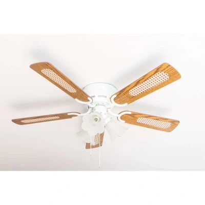 Kisa Deluxe Ceiling Fan 105 cm White Wing Oak / Walnut Including Lighting and Pull Switch