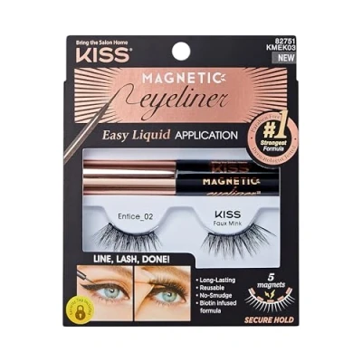 KISS Magnetic Lash Collection Eyeliner & Kit 1 Pair of False Eyelashes and Eyeliner, Entice, Reusable Synthetic With 5 Double Strength Magnets