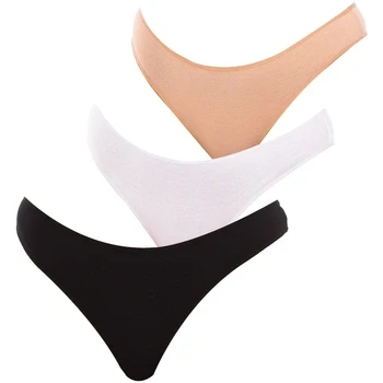 Pack-3 Q-EN micro-fiber thongs. Color Beige-black Elastic rubber waistband. Detail of the brand's name printed on one side. Elastic and breathable fabric. Tonal inner lining. Seams seen in tone. Composition: 95% Bamboo, 5% Elastane Wash at max temperature. 30th. - Do not use bleach. - Do not use dryer. - Do not iron. - Do not dry clean.