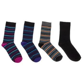 Pack of four pairs of high-top socks. Made of warm cotton. Reinforced heel and toe. Anti-pressure cuff. Elastic and breathable fabric. One size: from 35 to 40. Composition: 80% Cotton, 18% Polyamide, 2% Elastane Care: Handwash. Do not use bleach. Do not use dryer. Do not iron. Do not dry clean.