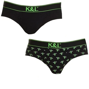 Kisses&Love Mens Pack 2 Slips Funny breathable fabric KL2007 man Black Size Medium