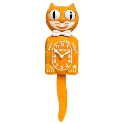 Festival Orange ICONIC TIMEPIECE - Brighten your home decor with the Festival Orange Kit-Cat Clock, This joyful orange timepiece brings a touch of autumn warmth to your space, a timeless cat clock with moving eyes and tail vintage that has delighted families for generations. with its smile. PERFECT SIZE FOR ANY ROOM - Standing 15.5 inches tall from ears to tail, adding a touch of sparkle and character to any space, big or small. Perfect for enhancing your cat wall decor and retro house decor. LIMITED EDITION & MADE IN USA - Proudly crafted in the USA by the original manufacturer, this high-quality Festival Orange Kit-Cat Clock is built to last, making it a special collectible and a charming addition to your home. Ideal for those seeking battery operated wall clocks. EASY TO POWER & INSTALL - Simply insert 2 C batteries (not included) and hang this battery wall clock on your wall no complicated setup required. Enjoy the unique charm of a kit cat clock with a modern twist, without the hassle. A STUNNING GIFT FOR ALL OCCASIONS - Whether for a housewarming, birthday, or holiday, the Limited Edition Festival Orange Kit-Cat Clock makes an unforgettable gift, combining its design with practical charm. Perfect for those looking for a unique clock.