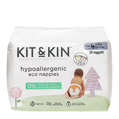 Kit & Kin Eco Nappies Size 4, 32 pack, 9 14kg/20 31lbs