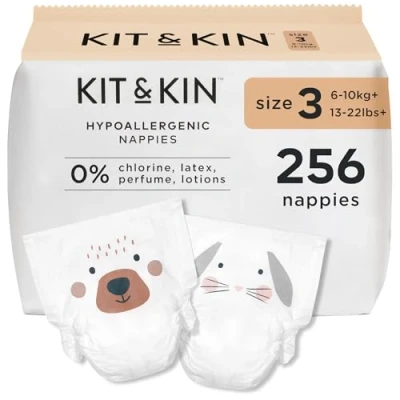 Kit & Kin Premium Eco Baby Nappies Size 3 Plant Based Hypoallergenic Superior up to 12 Hour Leak Protection Vegan Cruelty Free No Harsh Chemicals 6 10 kgs / 13 22 lbs 256