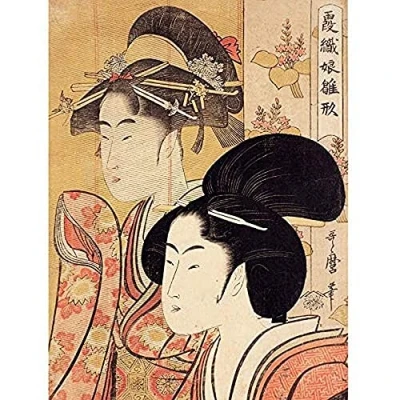 Kitagawa Utamaro Zwei Schönheiten mit Bambus Kunstdruck, Leinwand, Premium Wanddekoration, Poster Wandbild
