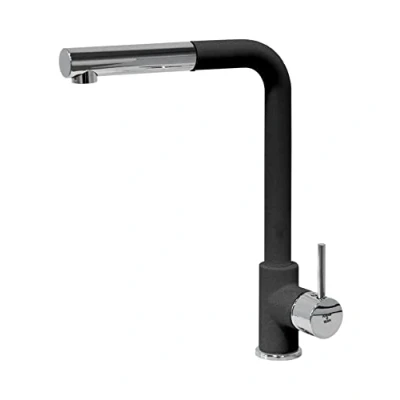 Single lever kitchen sink mixer 90° barrel and pull-out shower rotation rod 360° Black Metal, Weight: 4.6517537282 pounds, Manufacturer: Plados