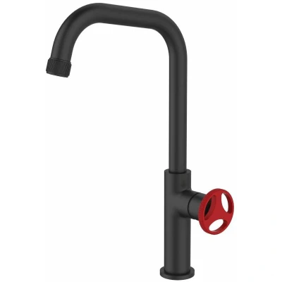 Kitchen Mixer Tap Sink Faucet Black Finishing with Red Handle Industrial Design